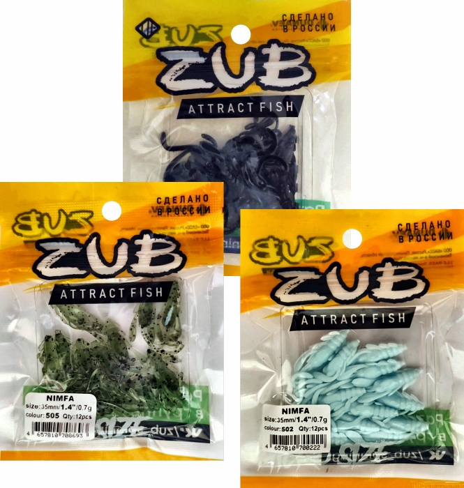 Приманка ZUB-NIMFA 35мм(1,4")-12шт, (цвет 911) машинное масло с блестками