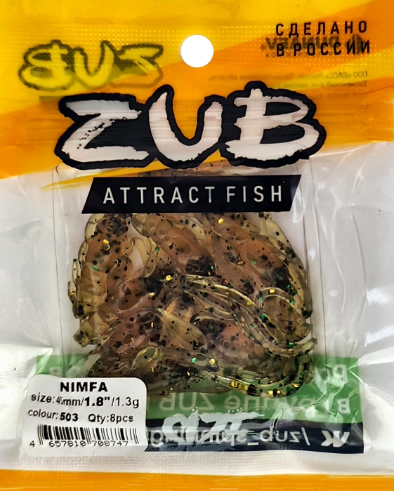 Приманка ZUB-NIMFA 45мм(1,8")-8шт, (цвет 503) коричневый с блестками
