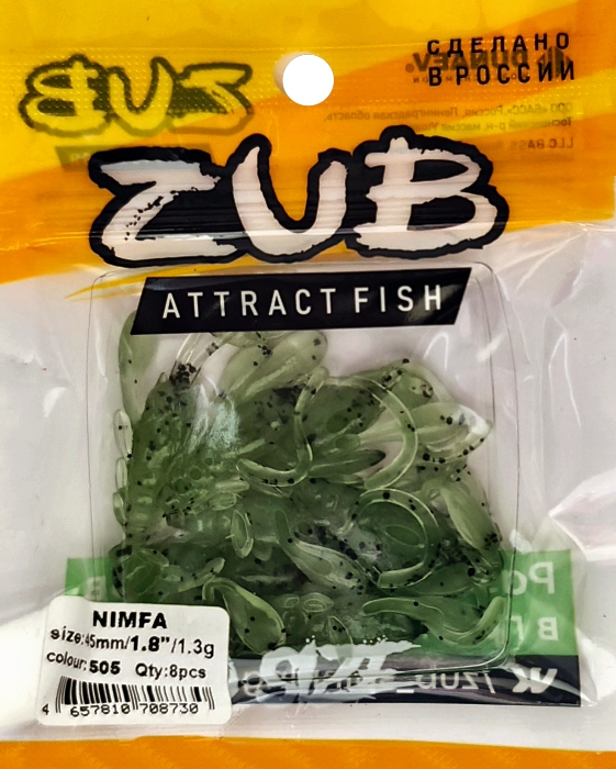 Приманка ZUB-NIMFA 45мм(1,8")-8шт, (цвет 505) зеленый с блестками