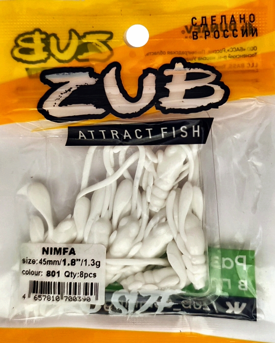 Приманка ZUB-NIMFA 45мм(1,8")-8шт, (цвет 801) белый