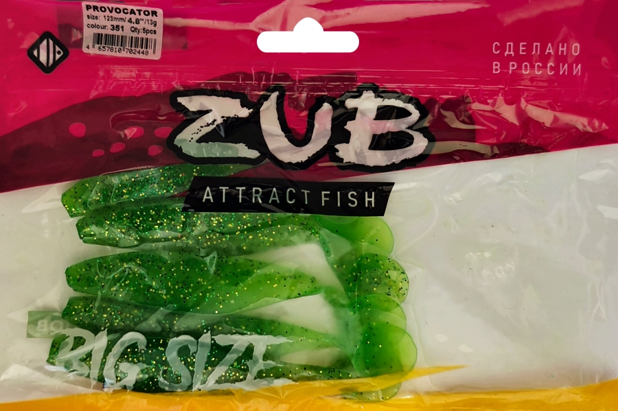 Приманка ZUB-PROVOCATOR 123мм(4,8")-5шт, (цвет 351) шартрез с блестками