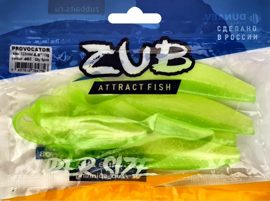 Приманка ZUB-PROVOCATOR 123мм(4,8")-5шт, (цвет 403) зеленый светящийся