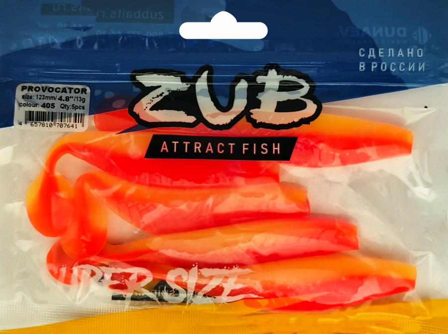Приманка ZUB-PROVOCATOR 123мм(4,8")-5шт, (Цвет 405) желтый верх - оранжевый низ