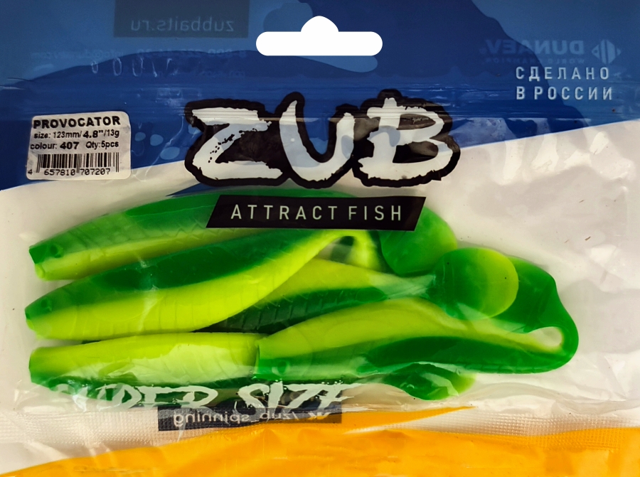 Приманка ZUB-PROVOCATOR 123мм(4,8")-5шт, (Цвет 407)зеленый верх - желтый низ