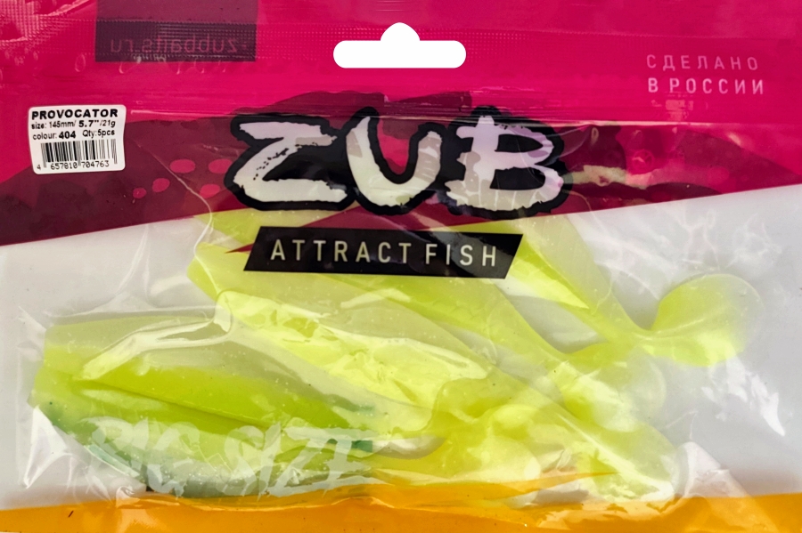 Приманка ZUB-PROVOCATOR 145мм(5,7")-5шт, (цвет 404) желтый светящийся