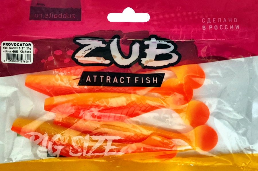 Приманка ZUB-PROVOCATOR 145мм(5,7")-5шт, (Цвет 405) желтый верх - оранжевый низ