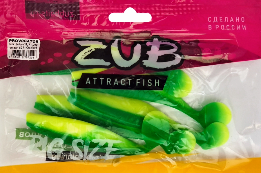 Приманка ZUB-PROVOCATOR 145мм(5,7")-5шт, (Цвет 407)зеленый верх - желтый низ