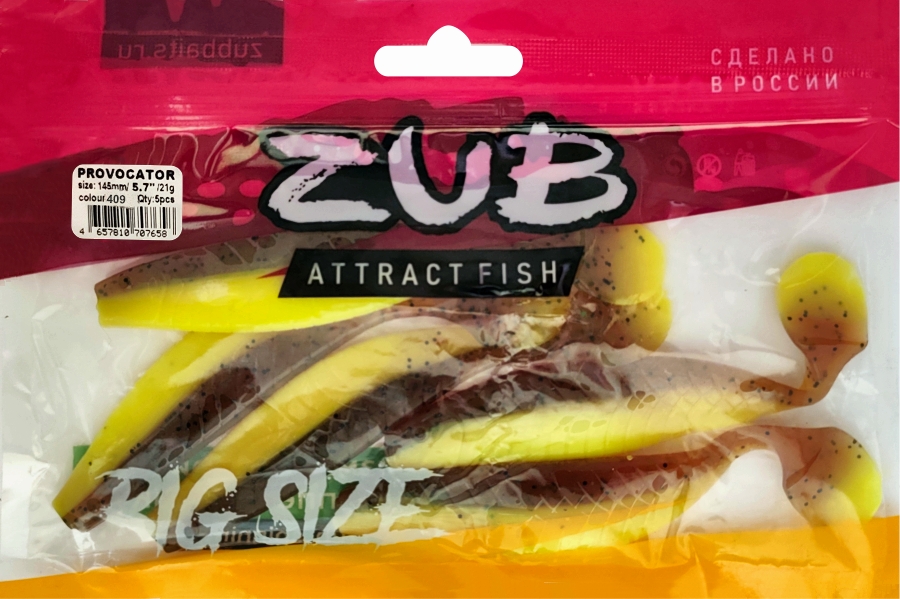 Приманка ZUB-PROVOCATOR 145мм(5,7")-5шт, (Цвет 409) машинное масло верх - желтый низ