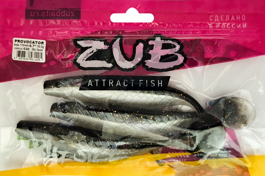 Приманка ZUB-PROVOCATOR 170мм(6,7")-3шт, (цвет 030) черный верх-натурал низ