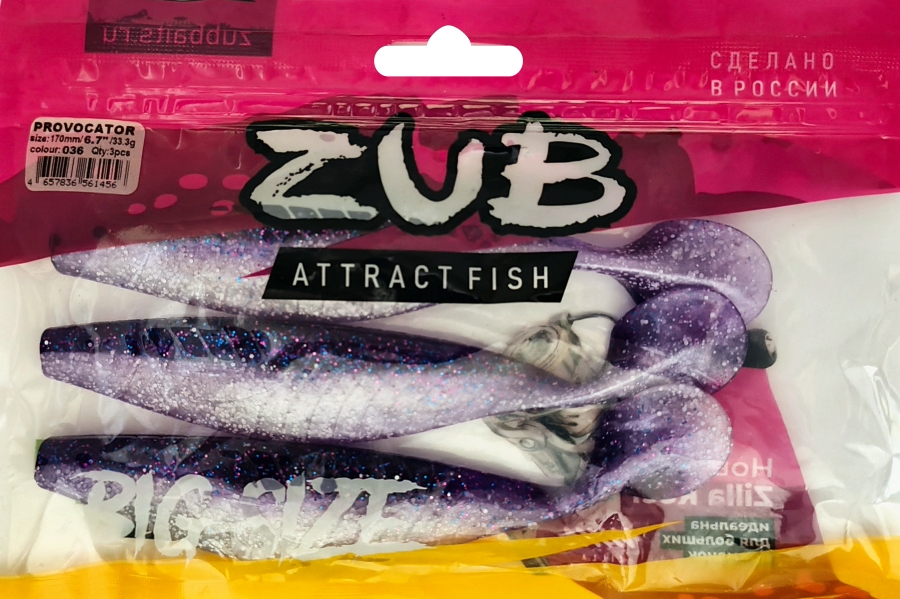 Приманка ZUB-PROVOCATOR 170мм(6,7")-3шт, (цвет 036) фиолетовый верх-натурал низ