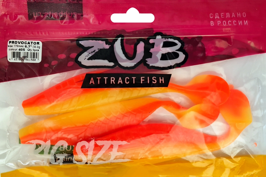 Приманка ZUB-PROVOCATOR 170мм(6,7")-3шт, (цвет 405) желтый верх - оранжевый низ