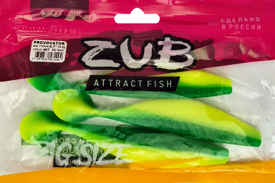 Приманка ZUB-PROVOCATOR 170мм(6,7")-3шт, (цвет 407)зеленый верх - желтый низ