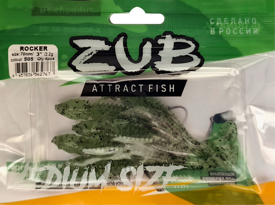 Приманка ZUB-ROCKER 75мм(3")-6шт, (цвет 505) зеленый с блестками