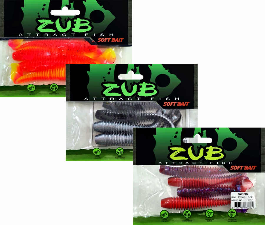 Приманка ZUB-SWING 117мм(4,6")-4шт, (цвет 037) голубой верх-натурал низ