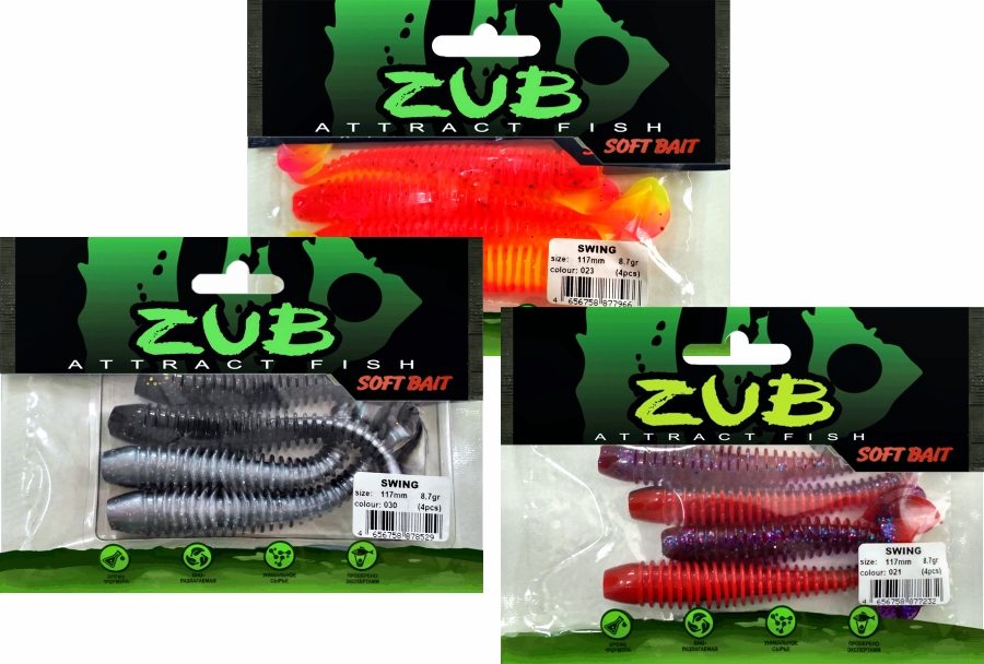 Приманка ZUB-SWING 117мм(4,6")-4шт, (Цвет 407)зеленый верх - желтый низ