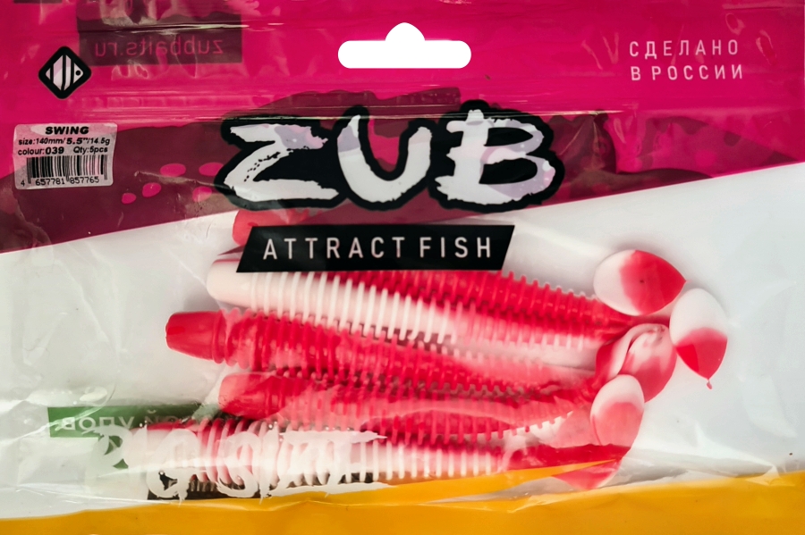 Приманка ZUB-SWING 140мм(5,5")-5шт, (цвет 039) красный верх-белый низ