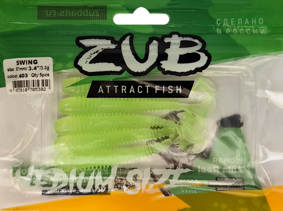 Приманка ZUB-SWING 87мм(3,4")-5шт, (цвет 403) зеленый светящийся