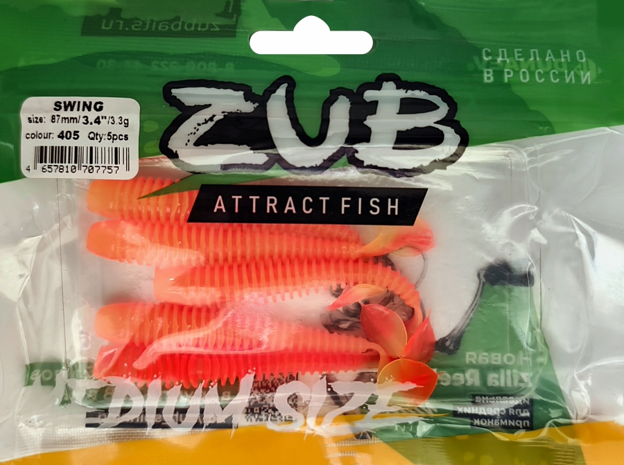 Приманка ZUB-SWING 87мм(3,4")-5шт, (Цвет 405) желтый верх - оранжевый низ