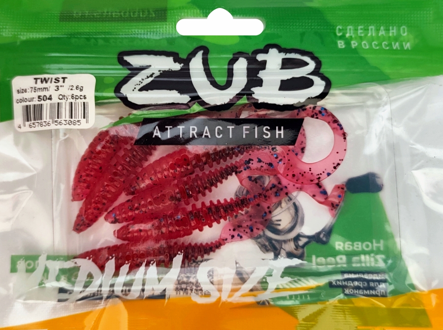 Приманка ZUB-TWIST 75мм(3")-6шт, (цвет 504) красный с блестками