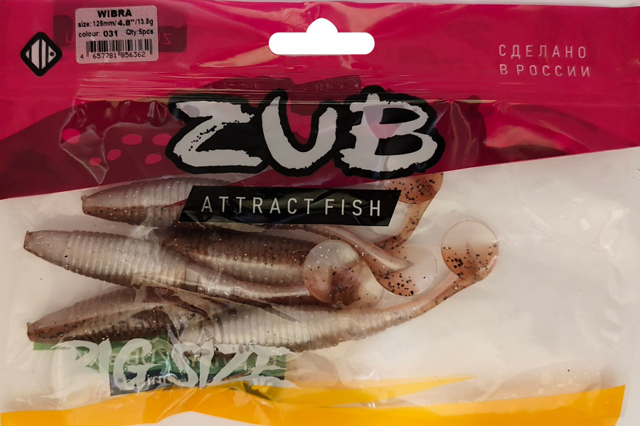 Приманка ZUB-WIBRA 125мм(4,8")-5шт, (цвет 031) карамель верх-натурал низ