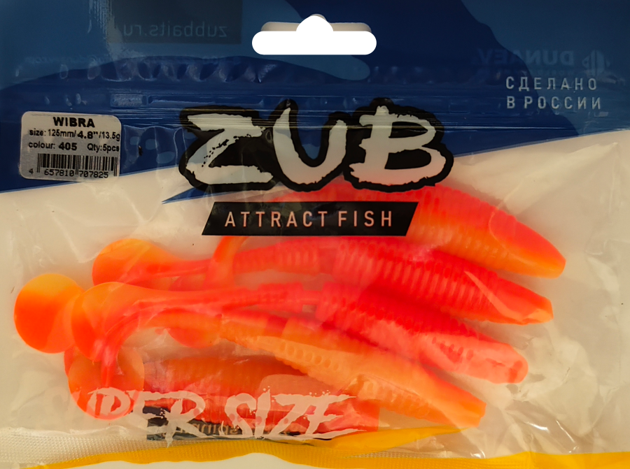 Приманка ZUB-WIBRA 125мм(4,8")-5шт, (Цвет 405) желтый верх - оранжевый низ