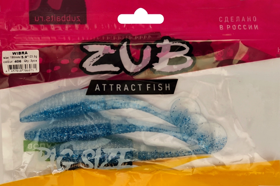 Приманка ZUB-WIBRA 150мм(5,9")-3шт, (Цвет 406) голубой верх - перламутр низ