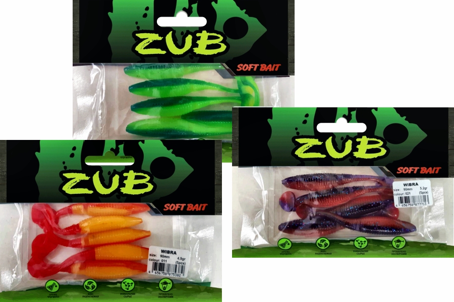 Приманка ZUB-WIBRA 90мм(3,5")-5шт, (цвет 501) серый с блестками
