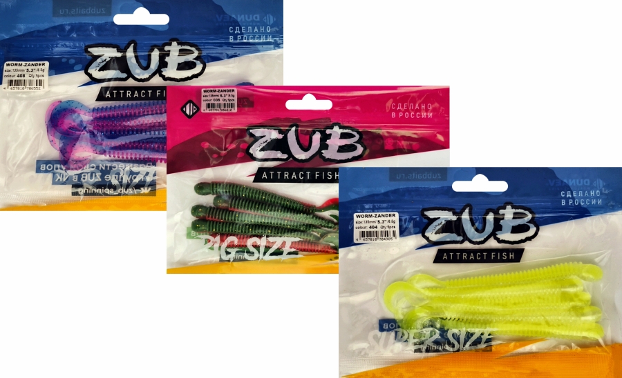 Приманка ZUB-WORM-ZANDER 135мм(5,3")-5шт, (цвет 039) красный верх-белый низ